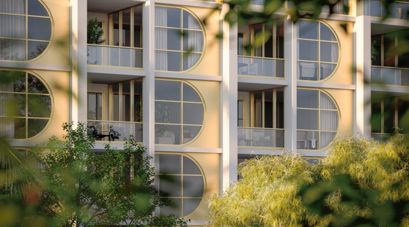 The three, seven-storey buildings will contain 410 dwellings in a mix of sizes and configurations, set among generous areas of landscaped communal open space including pedestrian boulevards, a rooftop community facility atop the central building, two swimming pools and gardens.