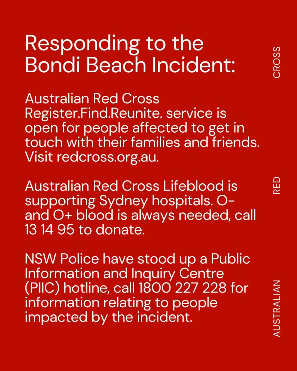 A message from Red Cross Australia about donating in the aftermath of the Bondi Beach shooting. Image: Screenshot.