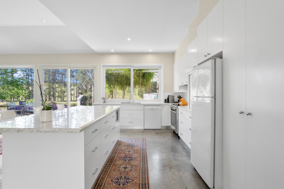 “Designer John Armes nailed the brief here. It’s solar-passive, filled with light, captures incredible garden views, and has a refined yet tactile atmosphere with creative visual lines, high coffered ceilings and sealed concrete floors.”
