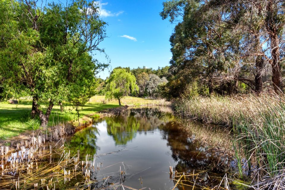 “There are a number of water features to enjoy alongside beautiful England’s Creek. The large pond behind the home has a lovely jetty. It’s a favourite with wild ducks and other native birdlife.