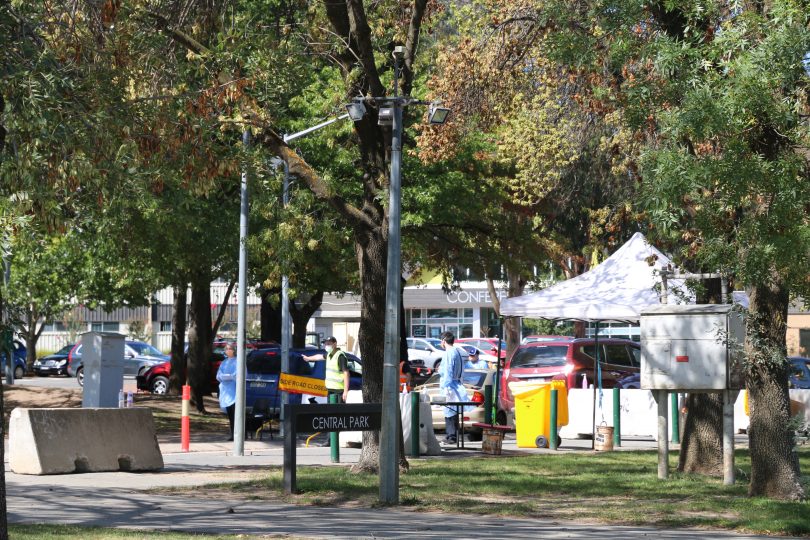 The COVID-19 testing assessment station at Exhibition Park. Photo: Dominic Giannini