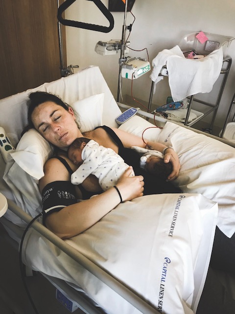 Camille Aniversario pictured after giving birth to twin daughters last October is among those with concerns about the Centenary Hospital. Photo: Supplied.