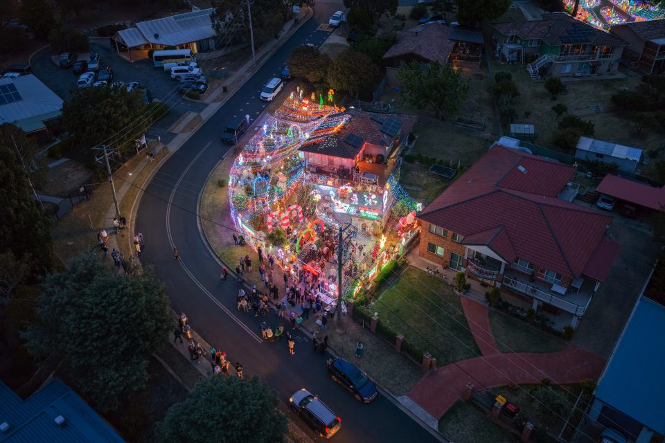 You can see Postman John’s Christmas light display at 4 Bent Street in Jindabyne. He’ll be lighting up the night each evening until 1 January.