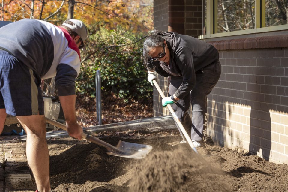 Woden Community Service’s director of disability, mental health and aged care, Pam Boyer, said the building and outdoor areas were looking tired so the staff and community members decided to give up their time to freshen it up.
