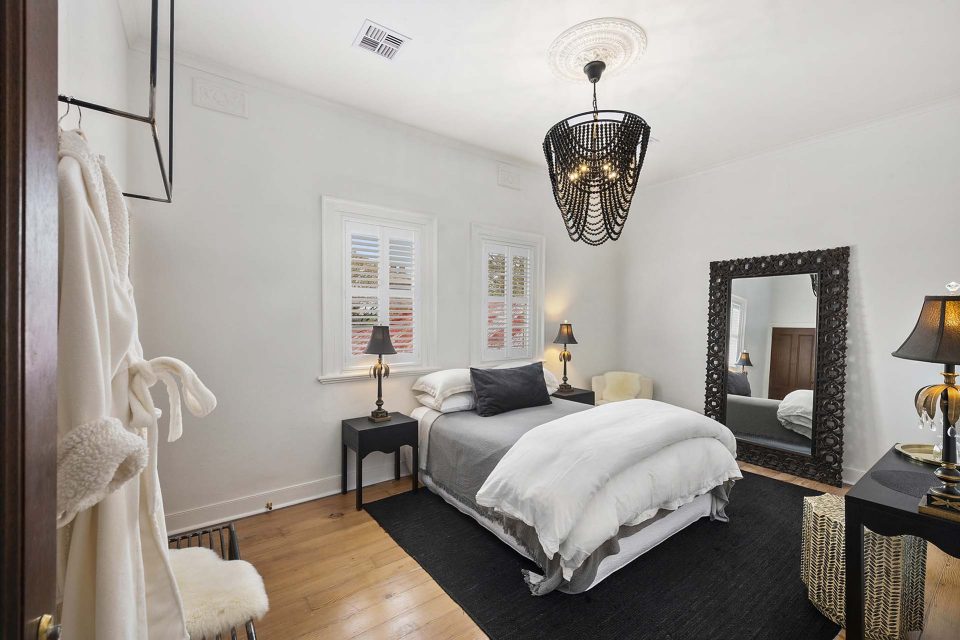 Up the grand original timber staircase are seven elegant guest suites.