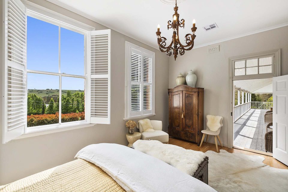 “Four have direct access to the wrap-around verandah, which offers a captivating view of the rolling hills and granite country that surround the heart of Braidwood.”