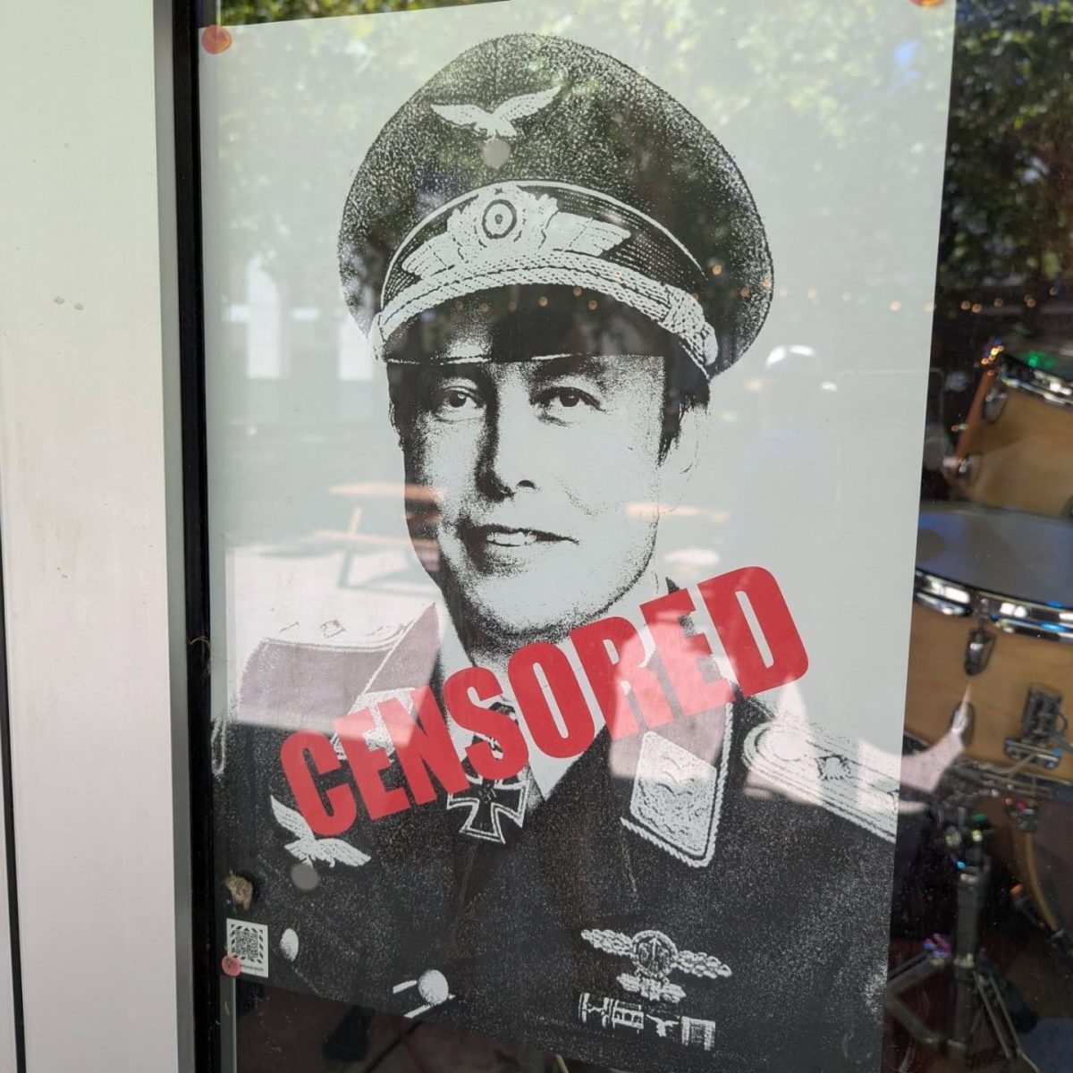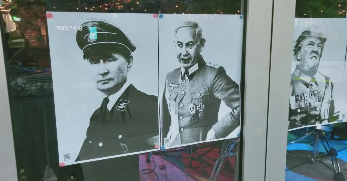 The posters pictured US President Donald Trump and US Vice President JD Vance in Nazi uniforms, among other leaders. Photo: Dissent Café and Bar.
