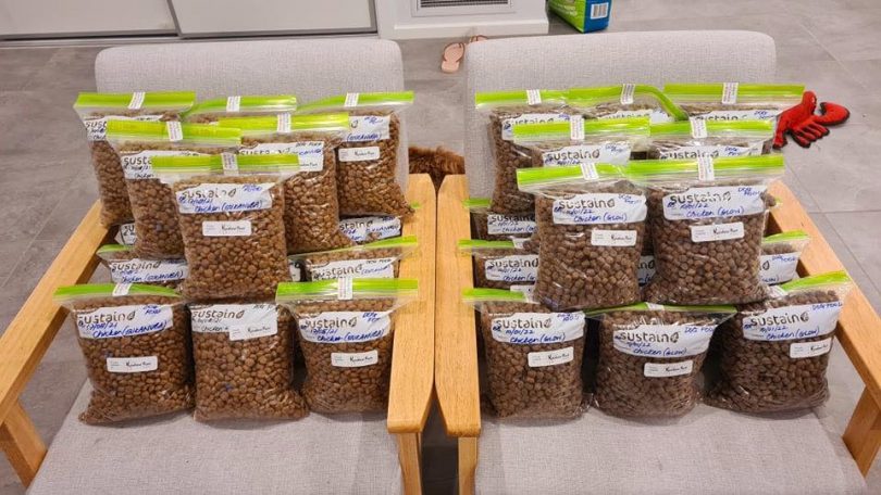 Rainbow Paws’ dog food packets delivered to Communities at Work Gungahlin Pantry. Photo: Rainbow Paws Program.