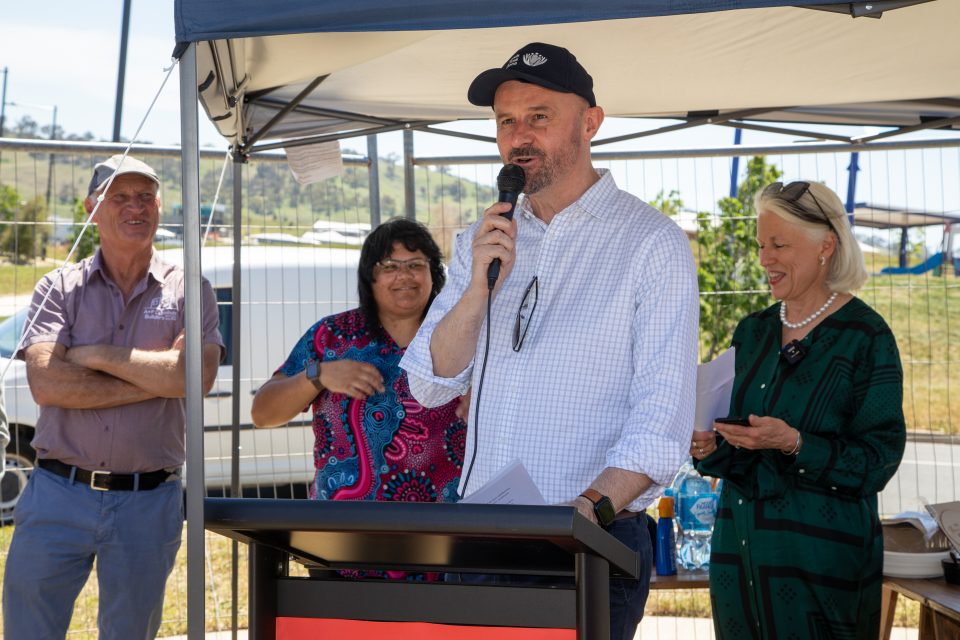 The house project was formally launched by Chief Minister Andrew Barr, with the assistance of the Suburban Land Agency, which worked with Hands Across Canberra to identify the block on one of Whitlam’s highest points, with sweeping views towards the blue line of the Brindabellas and a brand new playground across the road.