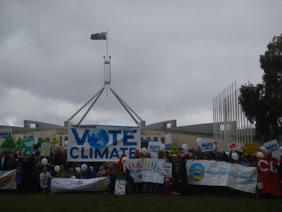 Took the dog for a walk and a protest broke out, as a bit over 1000 people came together for the Canberra Walk Against Warming. Seems to be working as its bloody cold and cloudy today.