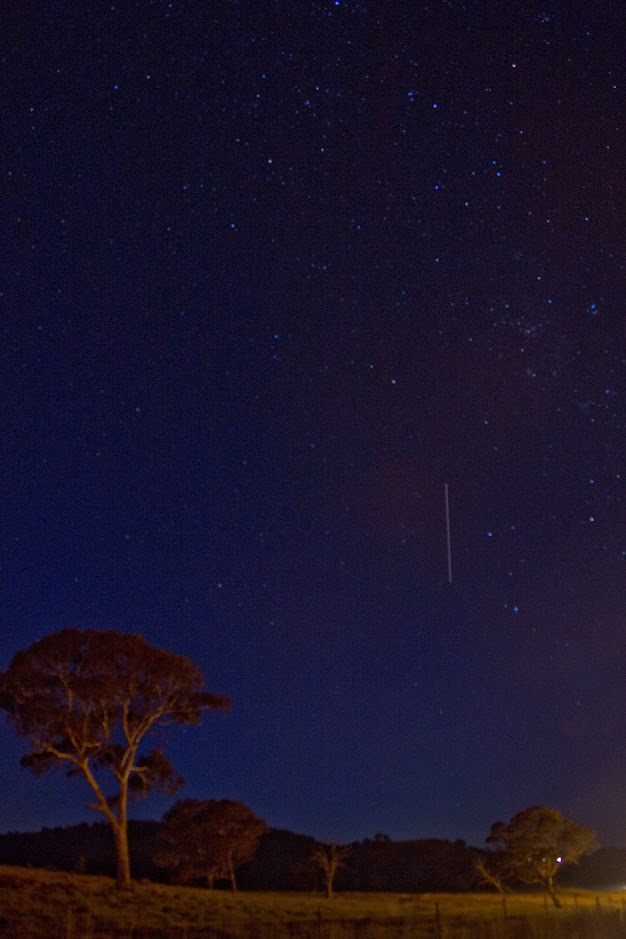 I’ve pushed the exposure of this one, so a little more of the Milky Way is obvious (as is the poor quality of my kit lens!) as the ISS disappears.
