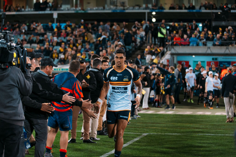 Chance Peni running on to the field for Brumbies vs Crusaders. Photo: Photox – Canberra Photography Services (www.fb.com/photoxben).