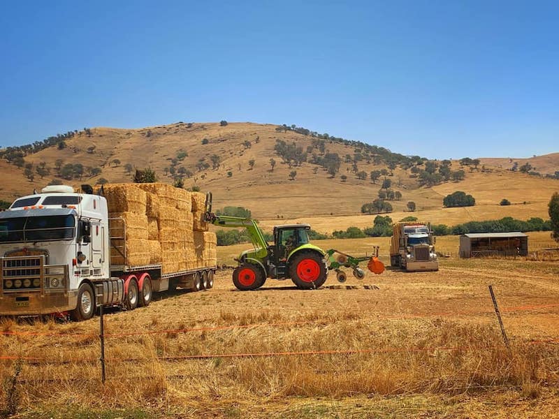 Loading hay on a property near Harden bound for farmers in the mountains. Photo: Supplied.