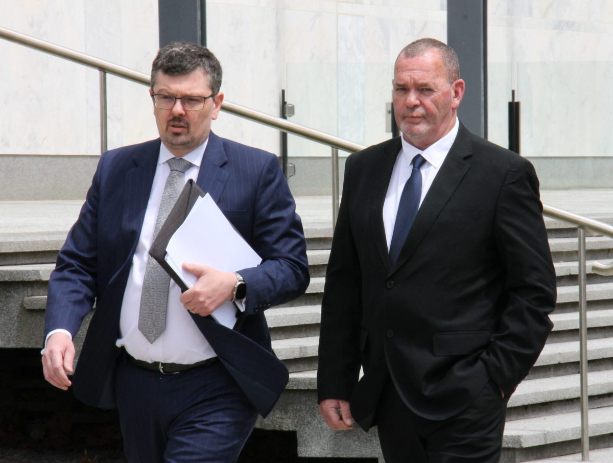 Michael John Wood (right) approaches the ACT Courts with his solicitor, Michael Kukulies-Smith of Kamy Saeedi Law. Photo: Albert McKnight.