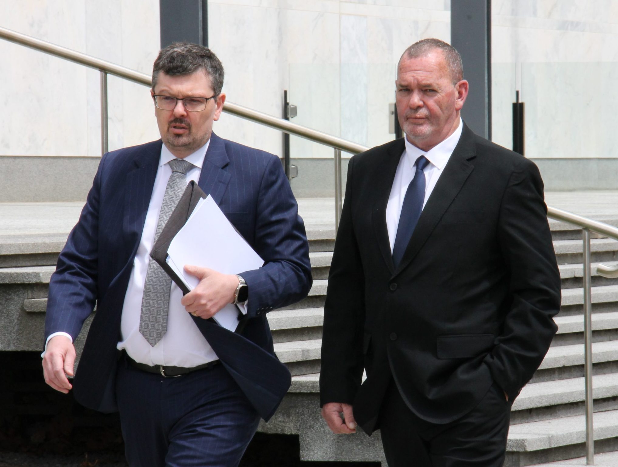 Michael John Wood (right) approached the ACT Courts last month with his solicitor, Michael Kukulies-Smith. Photo: Albert McKnight.