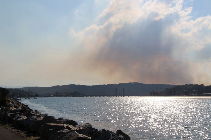 Plumes of smoke from hazard reduction burns near Batemans Bay. Photo: Alex Rea.