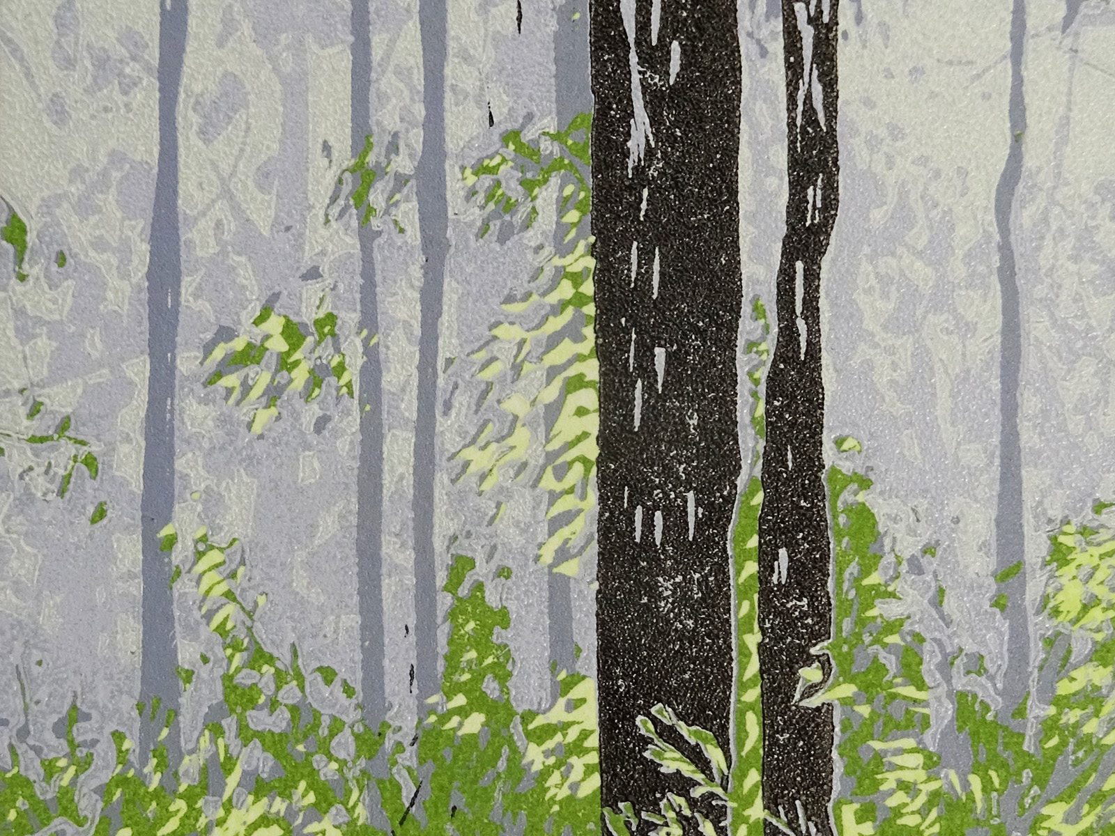 Peter McLean, ‘Smokey forest’, 2019, multicoloured lino print, Image: Peter McLean.
