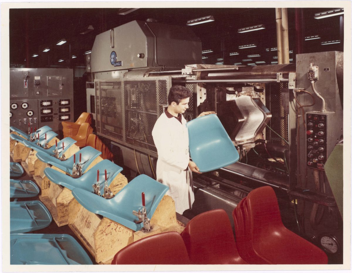 Sebel’s Furey chair assembly line, Melbourne, about 1960. Photo: NAA, B942, furniture.
