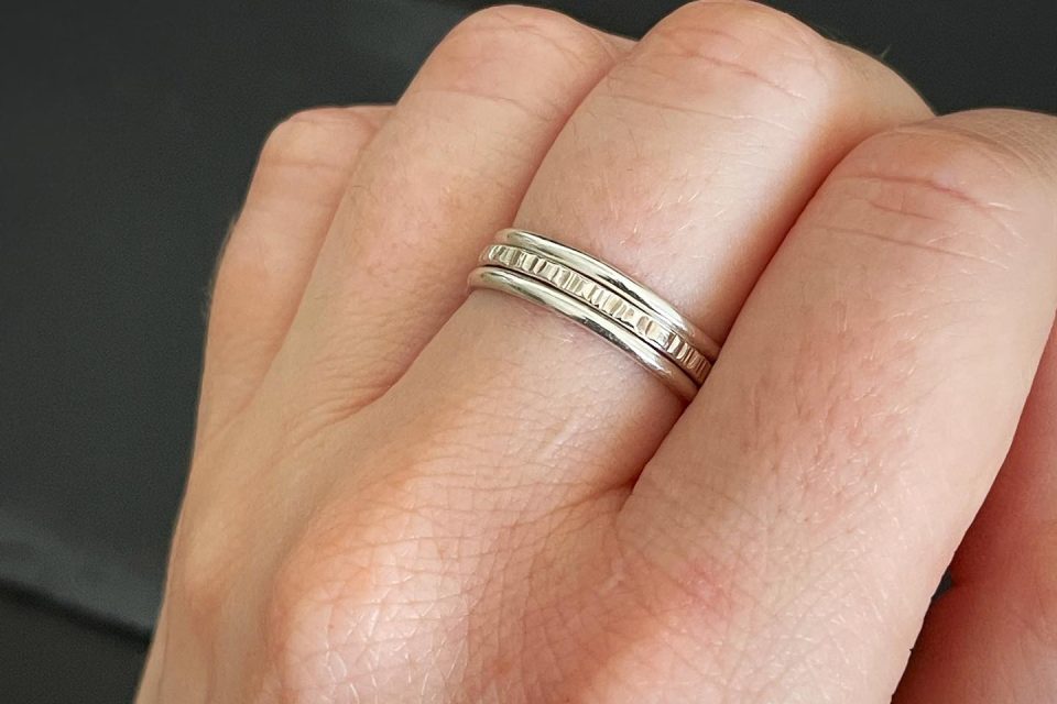 The latter collection is black and silver, while the other pieces were shinier. Sarah says she wanted those pieces – with their “earthier” look – to do more than catch someone’s eye.