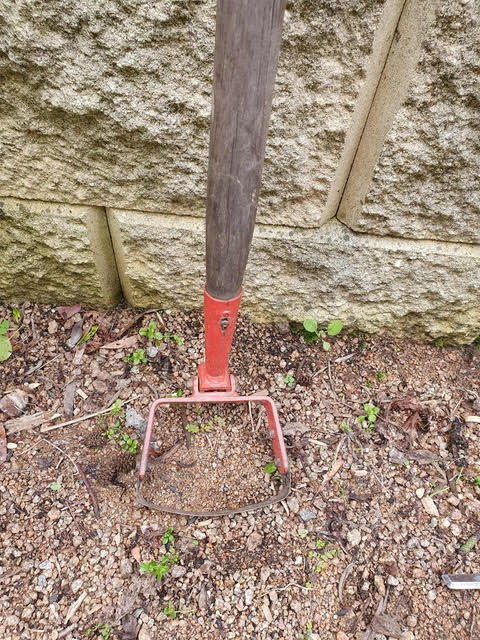 The stirrup hoe helps with pesky weeds. Photo: Wynlen House.