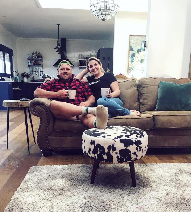 Toad and Mandy sitting on their lounge on Sunday night watching the new season of House Rules. Photo: Instagram @toadandmandy