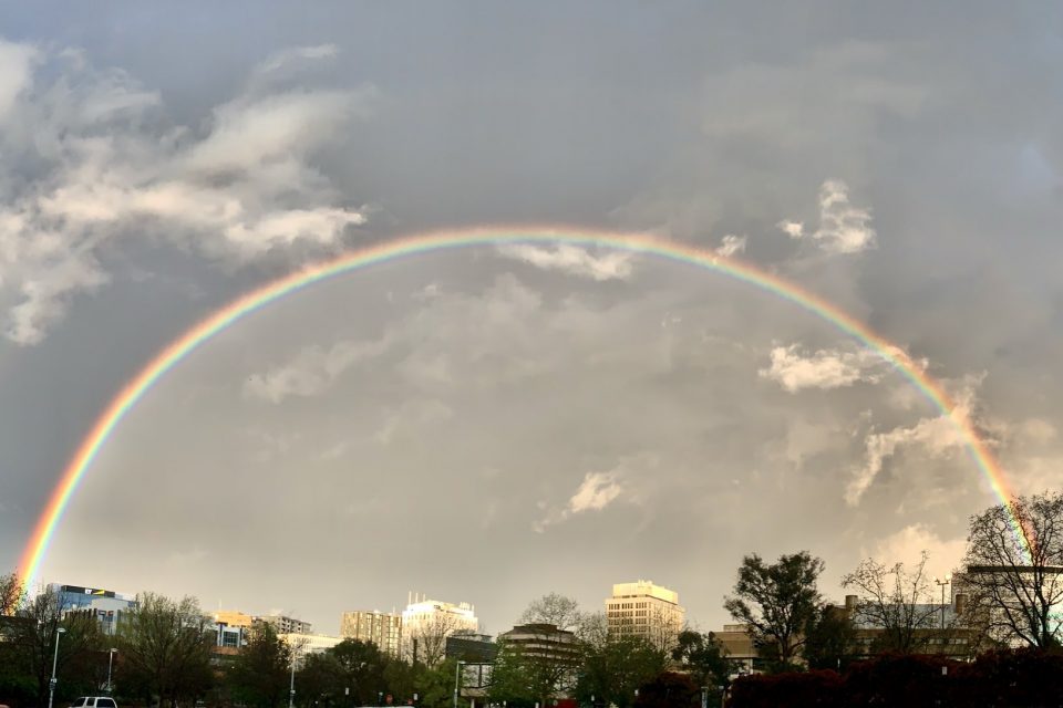 UPDATE – 6:00 pm: The storm has passed through the region, with no hail reported, however, our gallery of images at the bottom of this story includes some great rainbows.