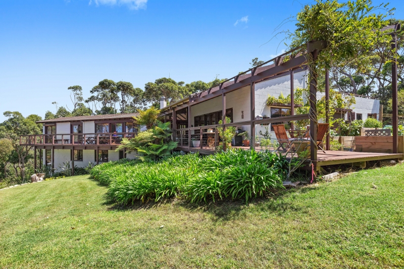 The private pathway from the home meanders gently through a mature iron bark woodland enclave to McKenzies Beach below.