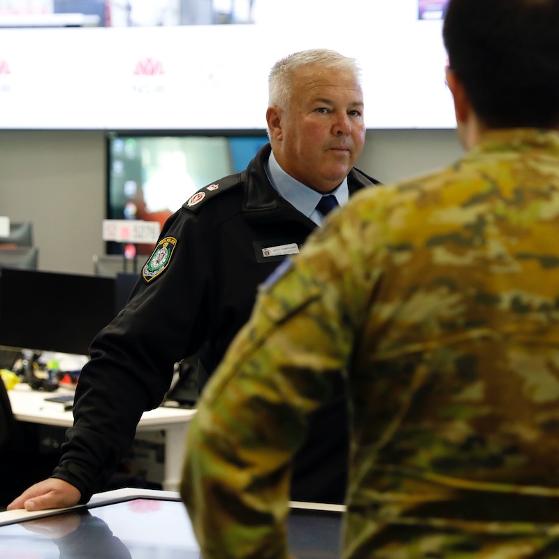 Worboys is based in the NSW Rural Fire Service’s operations centre in Homebush, which has become a combat agency rolling from one emergency to the next. He coordinates ambulance, fire and rescue, transport, the NSW Department of Premier and Cabinet, welfare, local government and other government agencies. His home life, golfing mates and gardening are all on hold. He knows Shane Fitzsimmons, the former rural fire chief, now Resilience NSW Commissioner so much better after they helped thousands of residents escape the past summer’s bushfires.