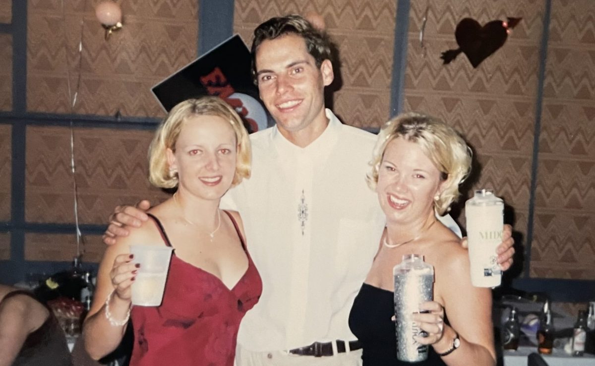 My mates Christy, Mossy and Kaz at the 1998 Desperate and Dateless Ball. Midori Illusions shakers in hand, of course. Photo: Supplied.