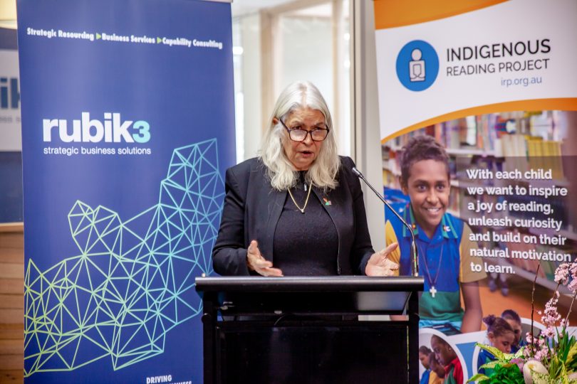 The Indigenous Reading Project was born, Professor Marcia Langton tweeted her support and found herself the patron in short order. This week, both were on hand to accept a giant cheque for $20,000 from Canberra consultancy firm Rubik3, who have put their money where their mouth is in terms of corporate social responsibility.