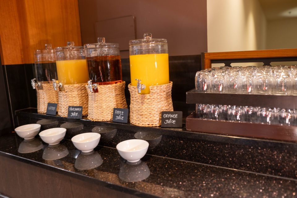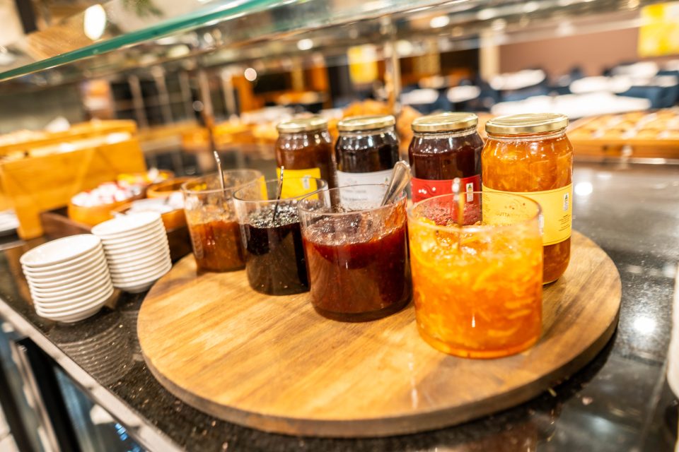 The bread station offers a wide variety of breads to suit every taste. Toast it yourself, then spread it with what feels like endless choices.
