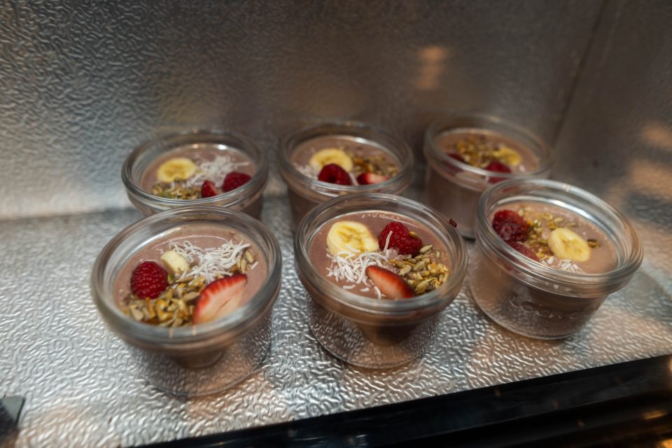 The vegan coconut yoghurt bowl with mango-passionfruit coulis is pure luxury; layers of creamy coconut yoghurt topped with sweet, tangy coulis that delights my taste buds.