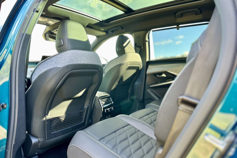 Unlike everything that has been called a mild hybrid up to this point, however, the 5008 can move at slow speeds under electric power alone. So, like a regular hybrid. Put your foot down a bit more, and the petrol engine chimes in with a bit of clunk – it’s not quite as smooth as a Toyota hybrid – and there’s a flare of noisy revs.