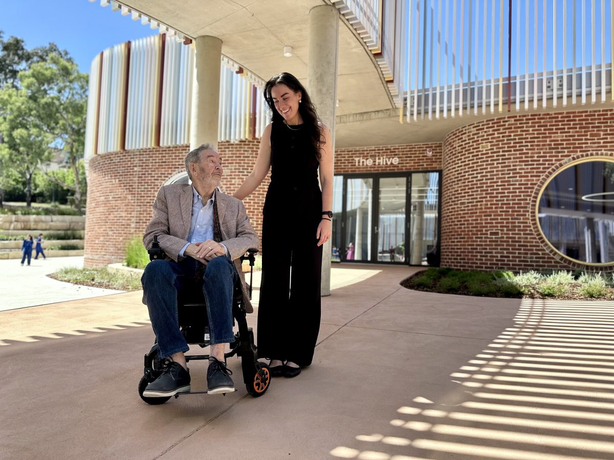 Garran Primary School’s original architect, Roger Pegrum, and the architect of the redevelopment, Eilish McNab. Photo: James Coleman.
