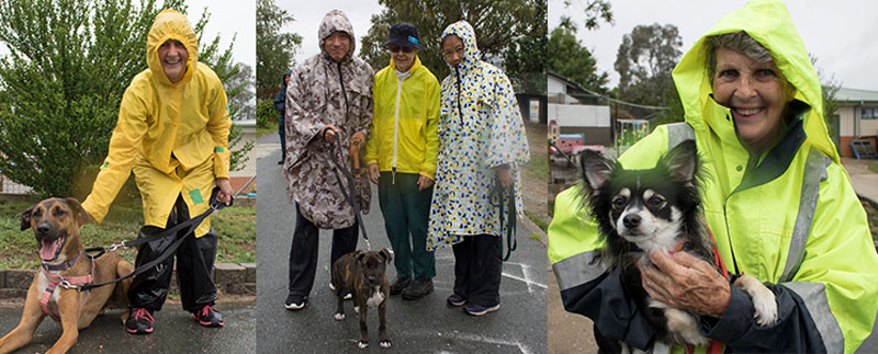 RSPCA ACT dedicated volunteers ensuring dogs are walked – even when it is pouring rain.