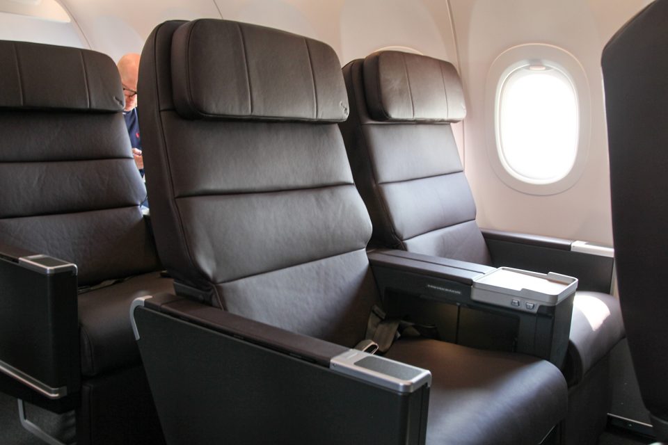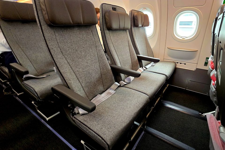 The 20 business and 177 economy class seats have already been seen on the airline’s new and smaller A220 regional airliners commonly seen in Canberra, Melbourne and Hobart. They feature in-seat USB-A and USB-C charging, inflight Wi-Fi, and a small folding shelf for a personal device such as an iPad, but no in-seat entertainment screen.