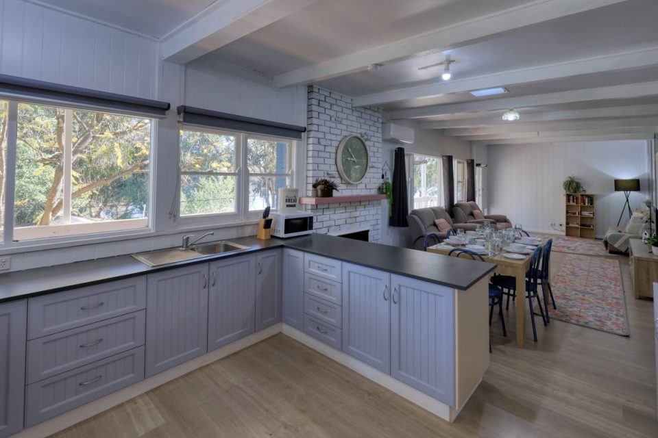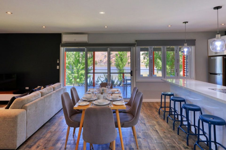 Reception doubles as a quaint cafe and boutique gift shop. There’s also a fully fenced swimming pool, and covered barbecues down by the water’s edge.
