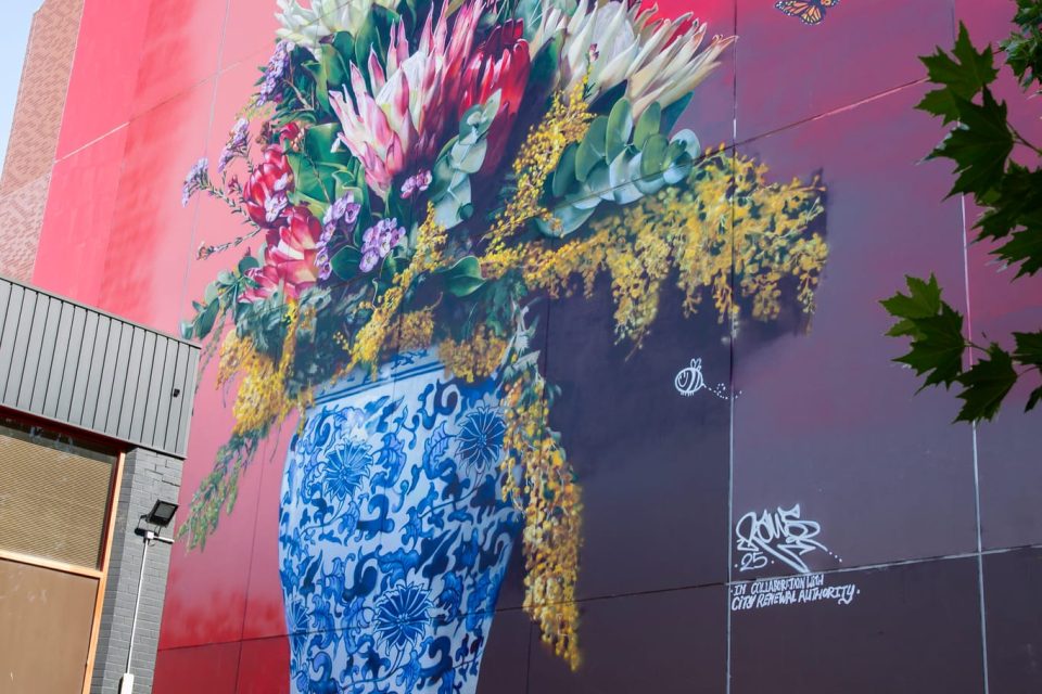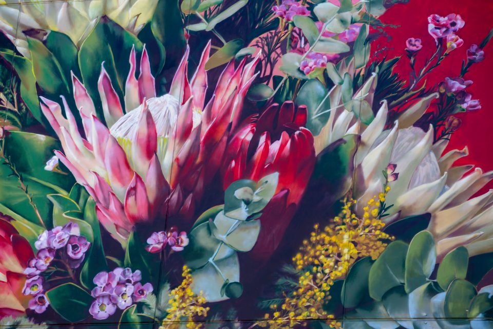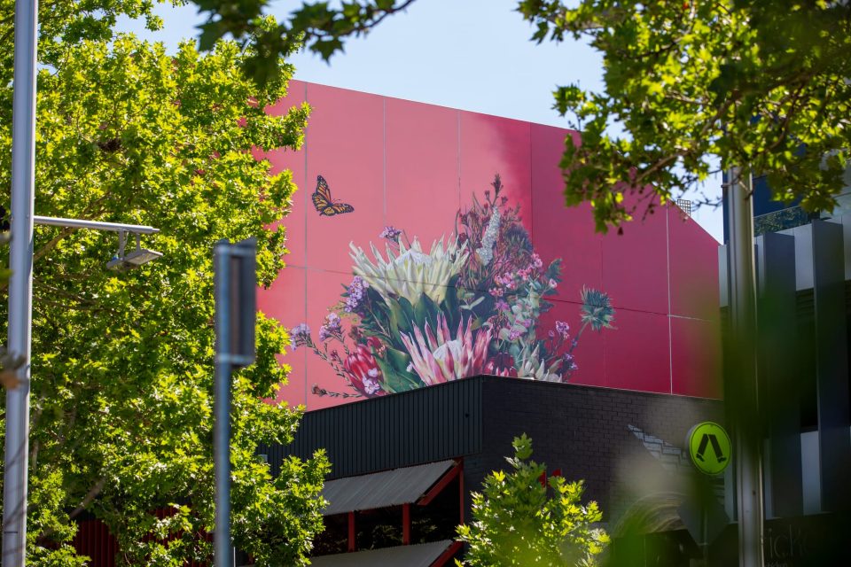 Local artist immortalises florals' fleeting beauty in Braddon's newest large-scale mural