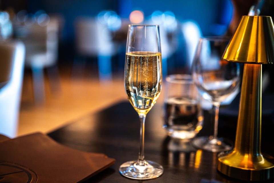 Our dinner begins with a glass of prosecco, smooth and fruity with soft bubbles that drift delicately up to the surface.