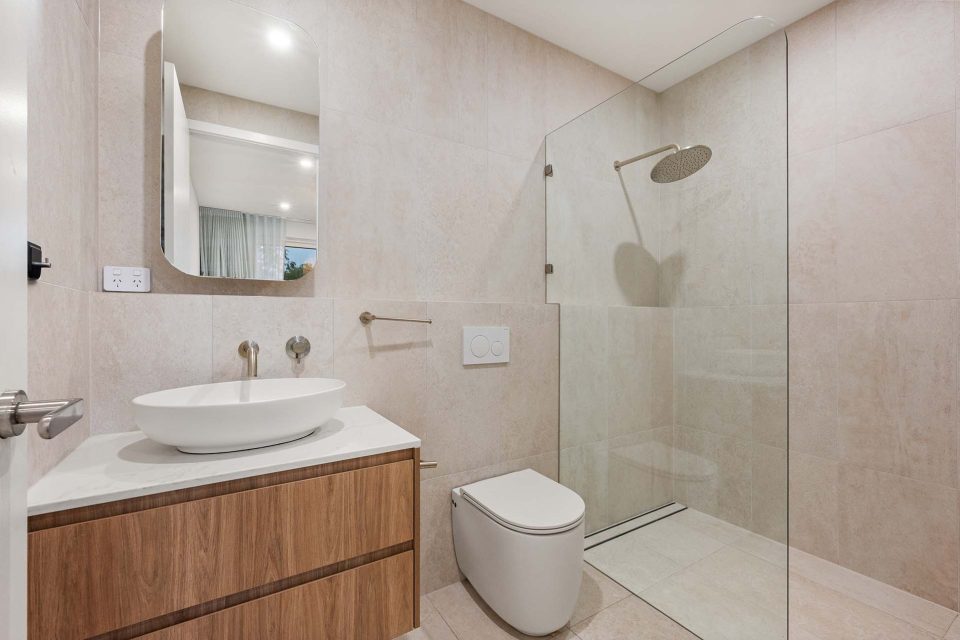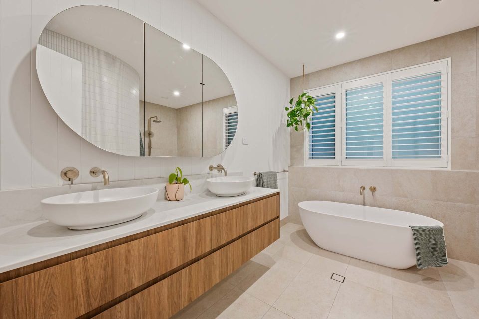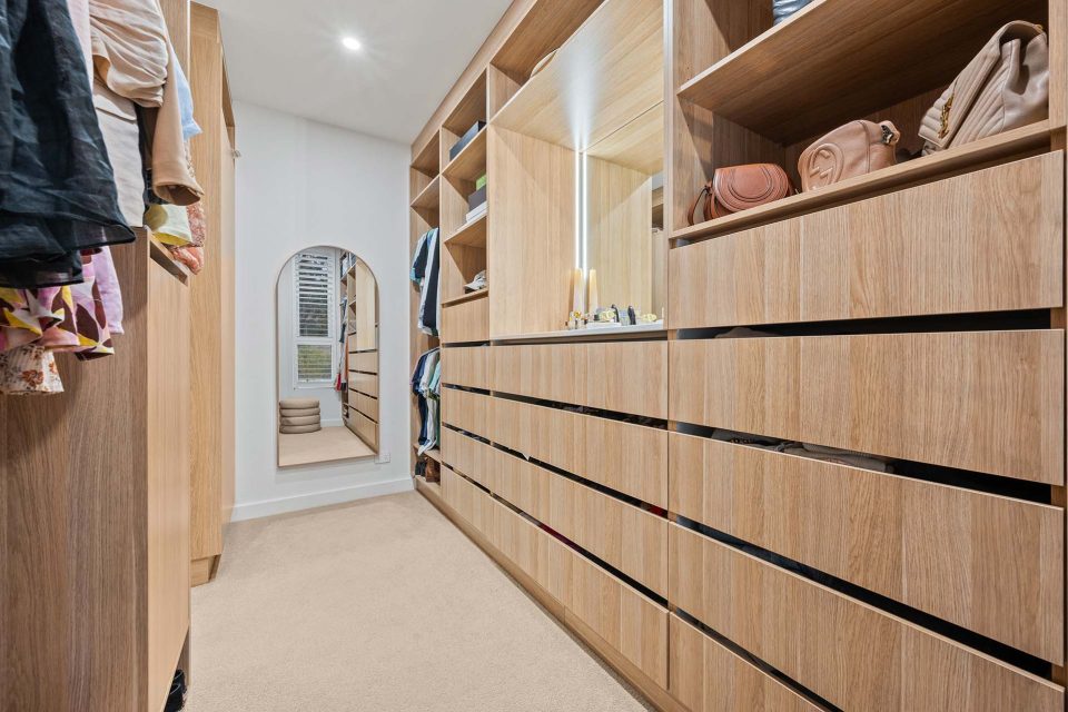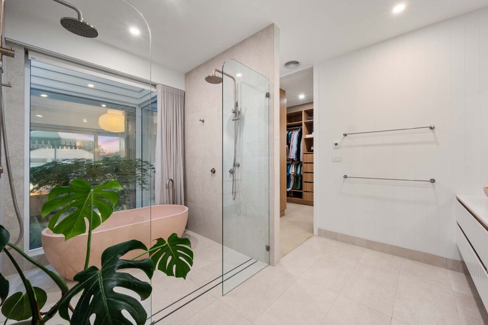Located in its own wing of the home, the main suite is as luxurious as the rest of the house, with a large walk-in wardrobe, an ensuite with a freestanding concrete bath, Meir double showerheads, a matching double vanity and huge sliding doors connecting to the alfresco.