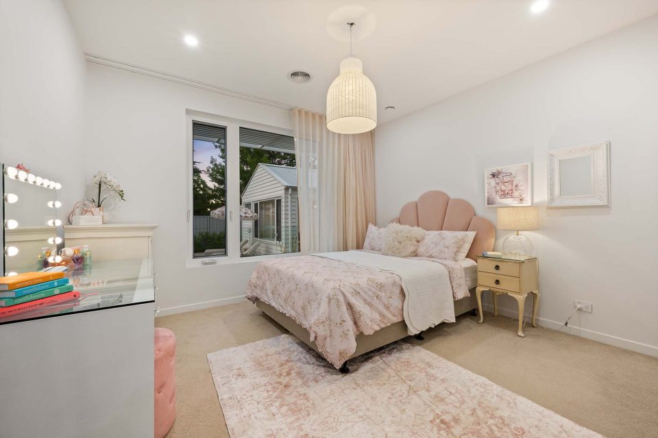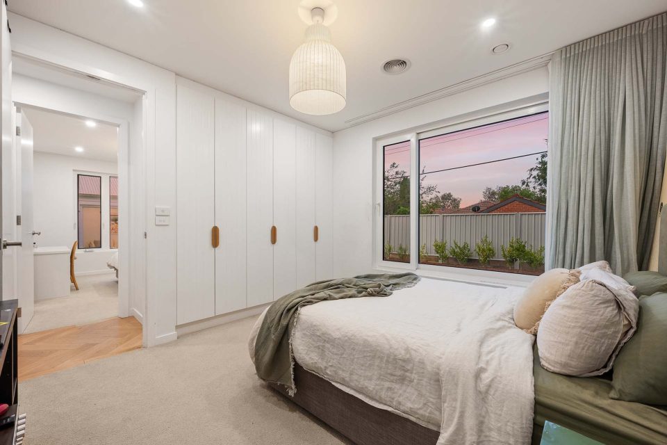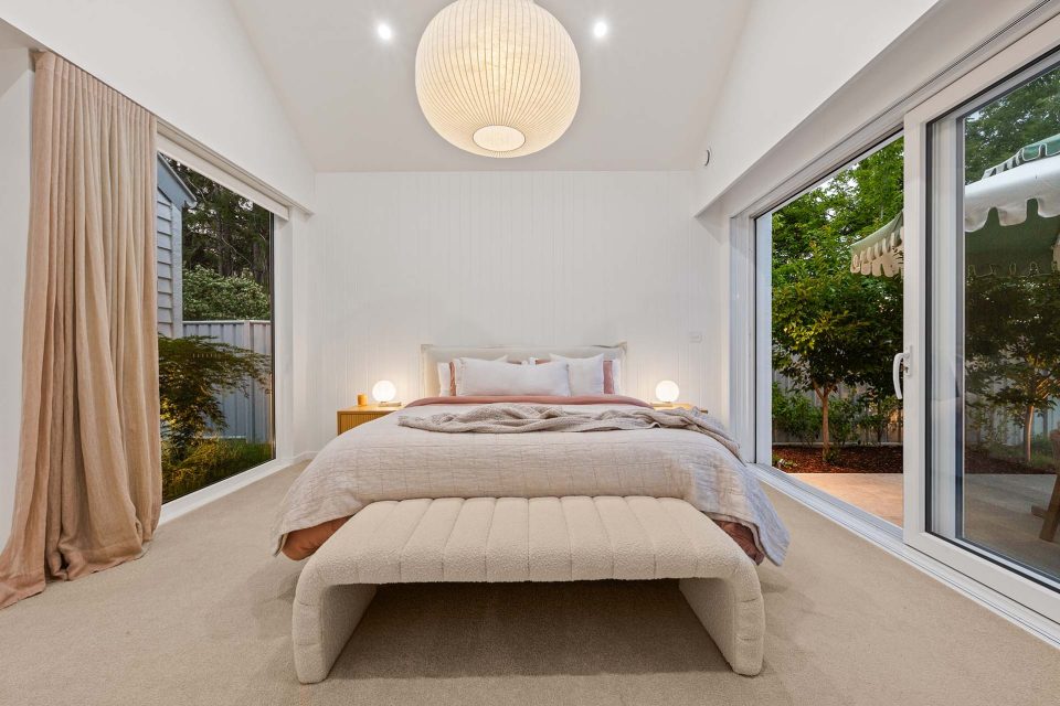 “You can really see the home’s sense of style in the main bedroom and the ensuite. It has a warm, soft colour palette and it fits in with the home’s overall aesthetic,” Sophie says.