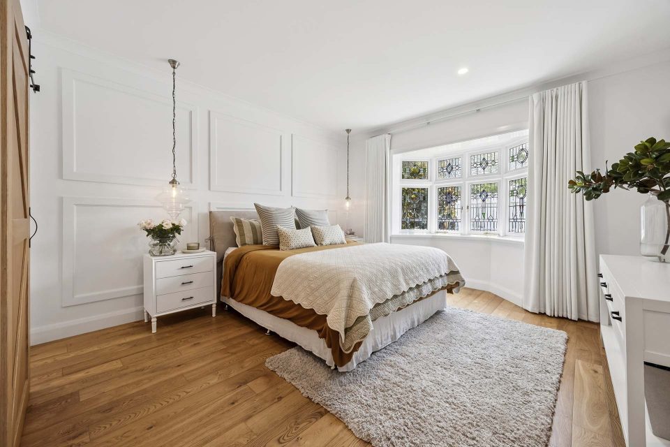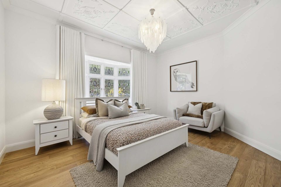 Bedroom three is further enhanced by an ornate ceiling which offers a subtle reminder of the home’s 1920s origins.