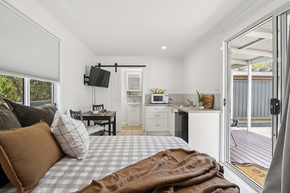 Set away from the main house, this studio-style accommodation includes a modern ensuite, a light-filled living space, and its own entertaining deck, ideal for guests, creative pursuits, or a teenager’s retreat.