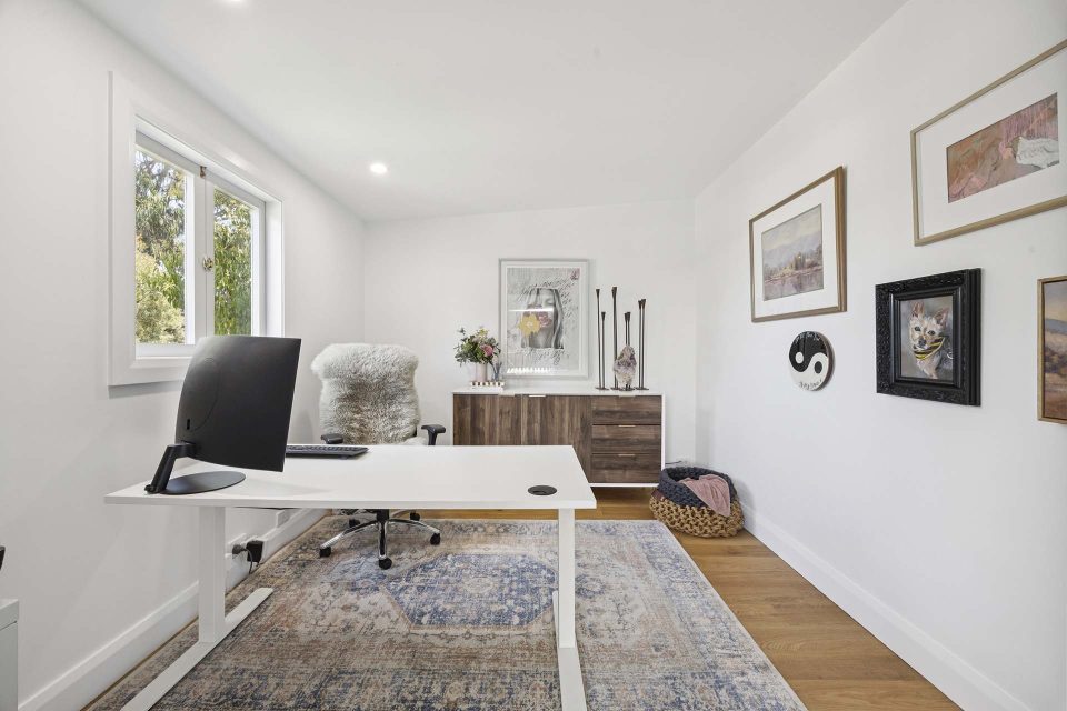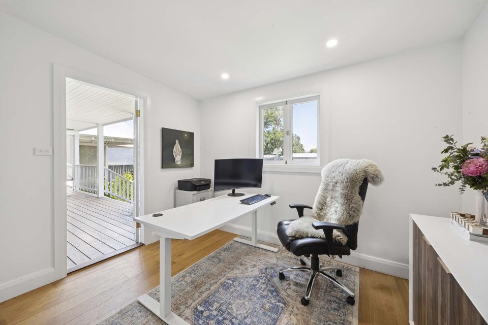 French doors extend the living zone onto a covered timber deck with direct access to a versatile study – ultra convenient for anyone who works remotely or runs a home-based business.
