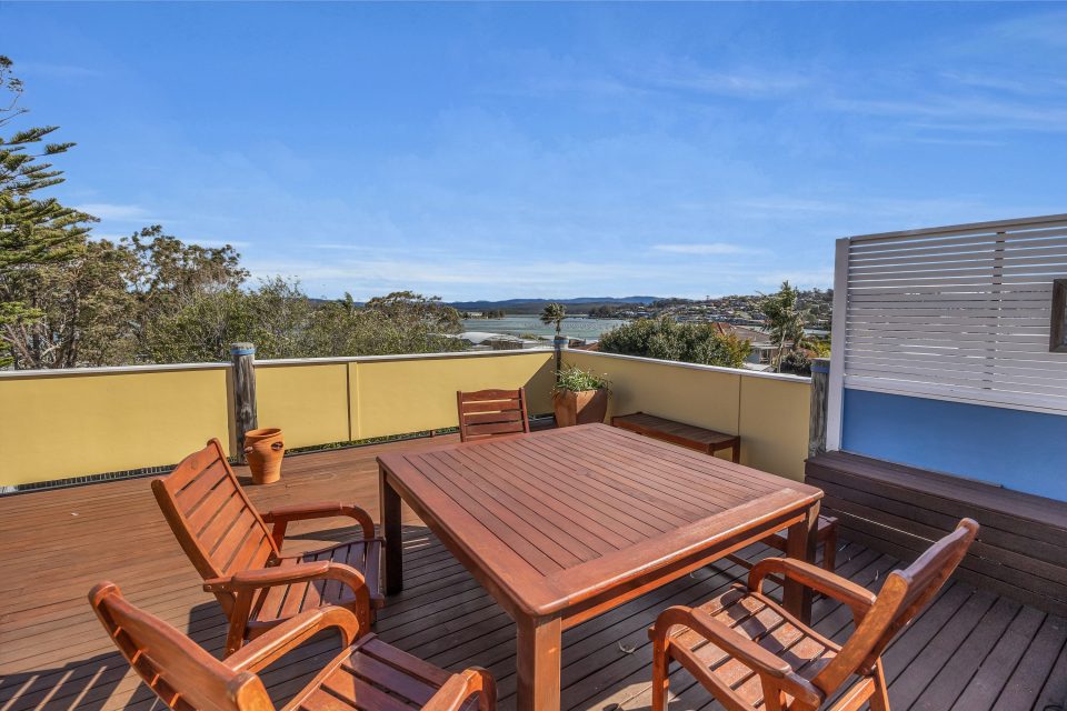 Wander down this quiet leafy street minutes from the heart of Merimbula and you’ll come across a two-level home loaded with character.