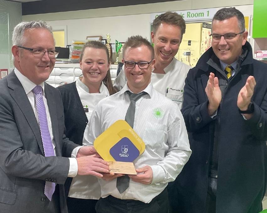 The award was presented by pharmacy proprietors Brad Butt and Brooke Veasey, and the pharmacy guild’s national president Trent Twomey.