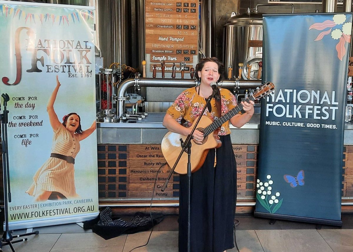 Folk singer Mandy Connell performs at the National Folk Festival launch. Photo: Ian Bushnell.