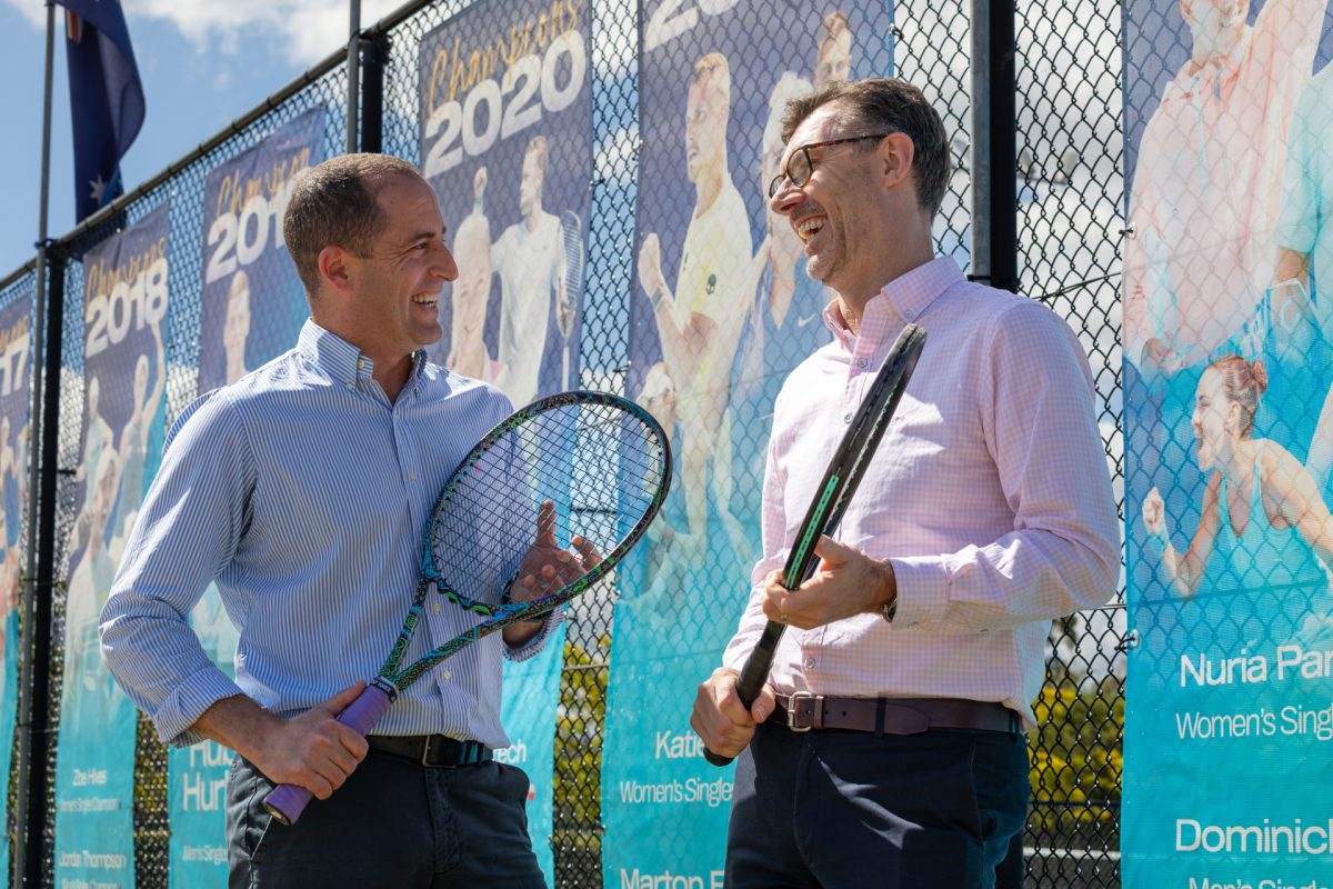 Tennis ACT CEO Mark La Brooy and Canberra International 2026 Tournament Director Lawrence Robertson. Photo: Michelle Kroll.