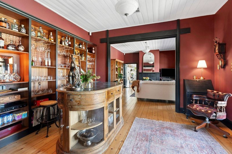 From Western Australian jarrah salvaged from Parliament House, to restored sash windows, white cedar floors and exposed red brick, the home harks back to history while integrating modern features such as a stellar bar room with Vintec wine fridges and brass finishes and a designer kitchen with pyrolytic ovens and a hot-cold-sparkling water zip tap.