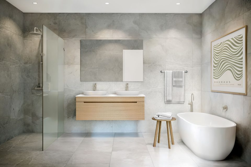 Two-bedroom townhouses will feature an open-plan kitchen, built-in robes, an external courtyard and a rear balcony, while the three-bedroom option has a large U-shaped kitchen, an oversized main bedroom with an ensuite featuring a freestanding tub and dual vanities, as well as the same external living areas.